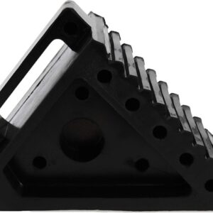 Heavy-duty rubber wheel chock designed to secure vehicles and trailers on various surfaces.